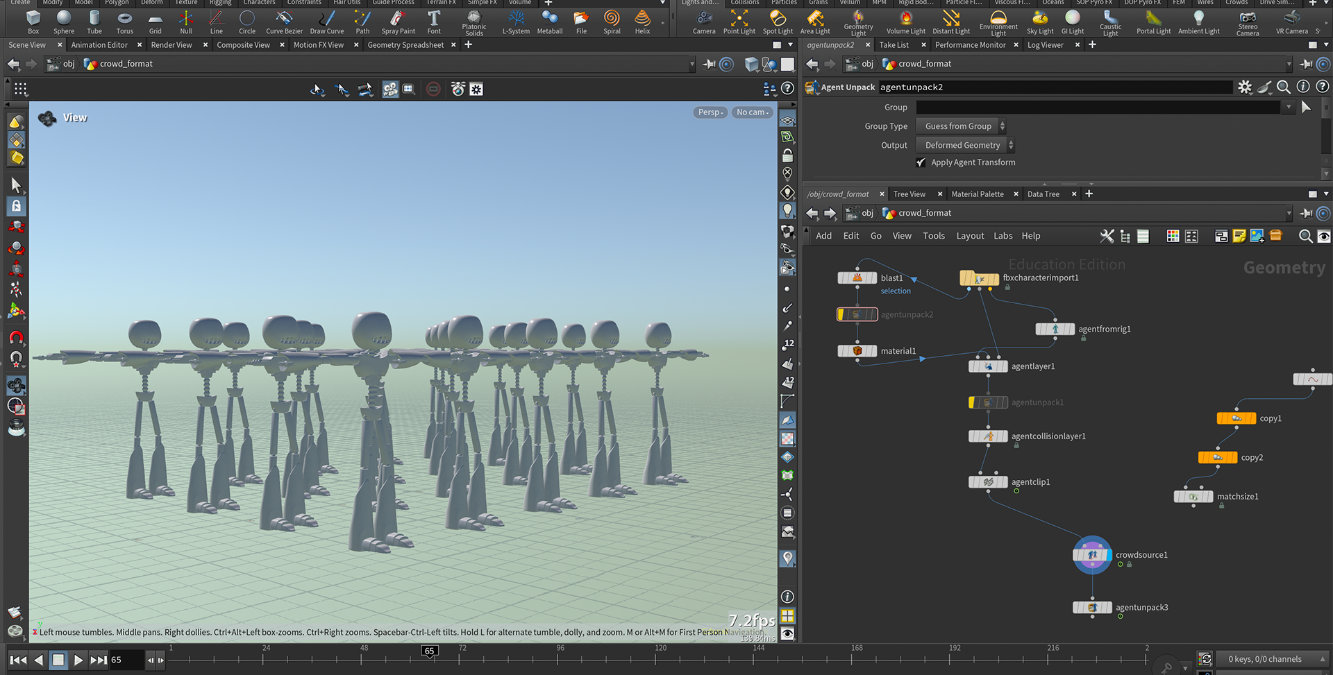 Ranging from motion variation, locomotion cycles and behavioural systems for these crowd sims in Houdini